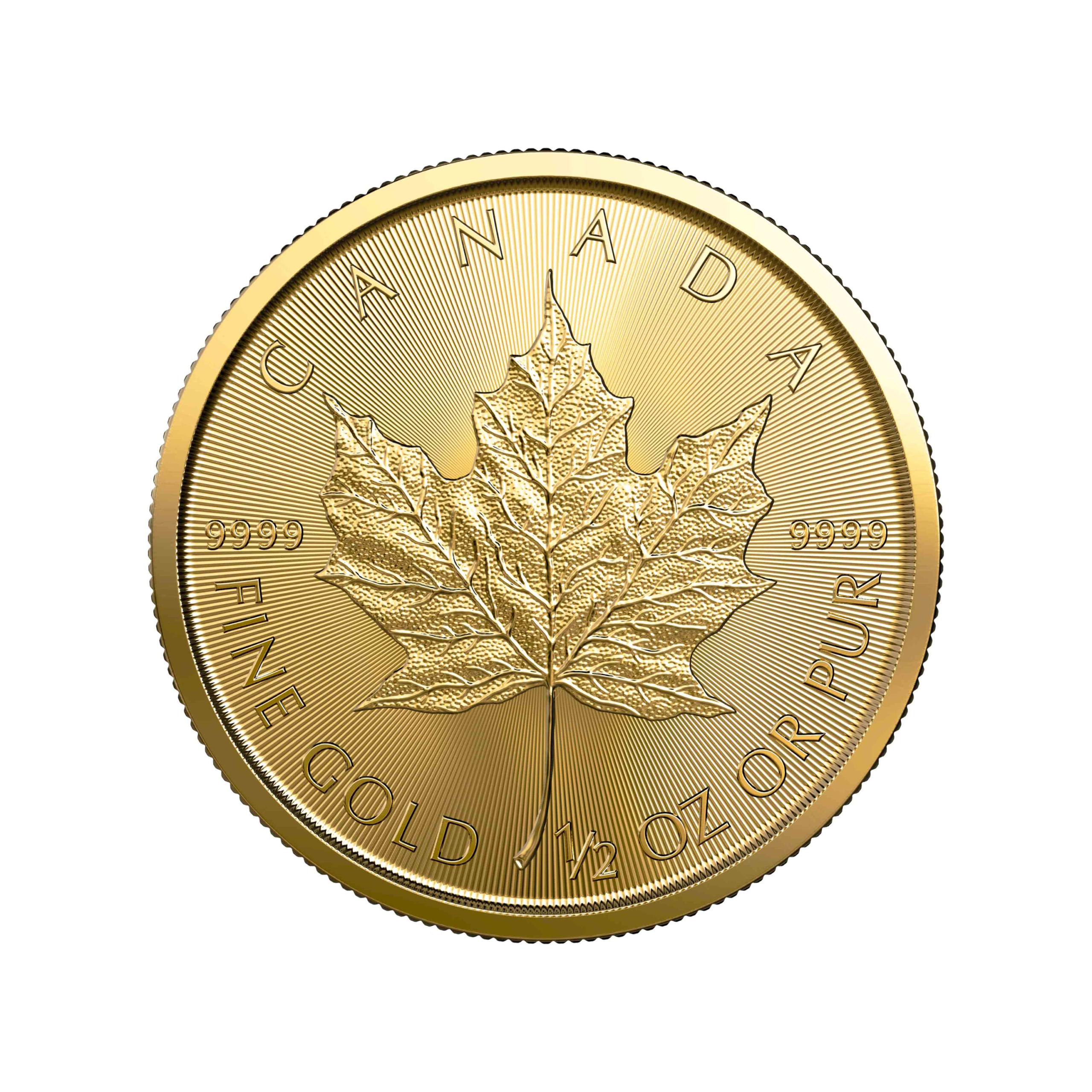 La moneda de oro Maple Leaf (hoja de arce) de 1/2 onza es atractiva y muy requerida por inversionistas debido a su pureza, reputación de la Real Casa de la Moneda de Canadá, y las características de seguridad del producto. Desde su introducción en el mercado, ha sido un gran éxito entre los compradores de metales de inversión a nivel mundial que prefieren comprar fracciones de onzas troy.